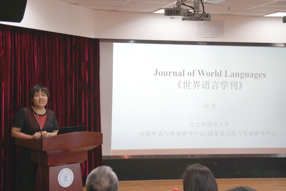 会议第二天上午举办了主编论坛。Functional linguistics联合主编常晨光教授、《解放军外国语学院学报》主编陈勇教授、Journal of World Languages联合主编何伟教授、《外语学刊》执行副主编孙颖教授、Researching and Teaching Chinese as a Foreign Language主编杨延宁教授和《北京第二外国语学院学报》执行主编周长银教授进行发言,对各期刊的基本情况、栏目设置、投稿要求、审稿流程、论文撰写建议等方面进行了介绍,为各位青年学者和学生的论文撰写和投稿提供了宝贵的建议。