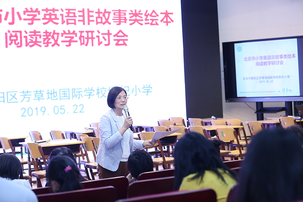 5月22日,北京市小学英语非故事类绘本阅读教学研讨会暨小学英语绘本阅读课程创新研究项目总结会于北京市朝阳区芳草地国际学校世纪小学成功召开。会议由北师大外文学院、北京教科院基教研中心、朝阳区教育研究中心联合主办,中阅院和外研社协办,芳草地国际学校世纪小学承办。会场座无虚席,吸引了北京市各区县小学英语教研员及教师约300人参加。