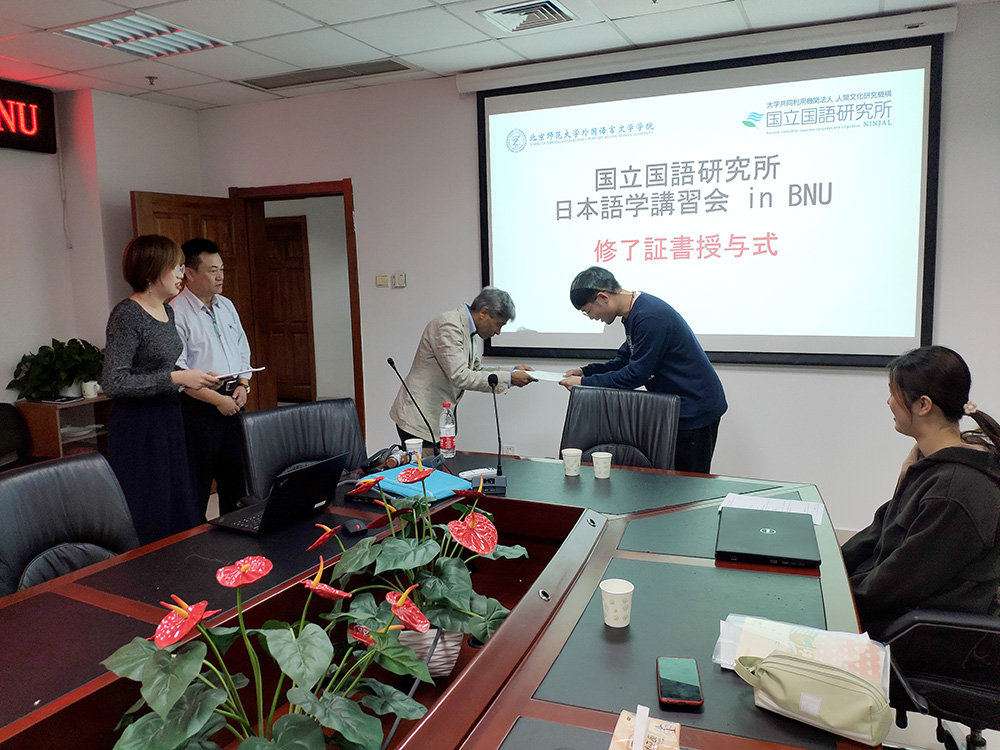 讲座结束后,Prashant Pardeshi教授向所有参会的教师、学生颁发了日本国立国语研究所的听讲证书。来自校内外的教师、学生约40人参加了今天的讲座。