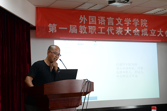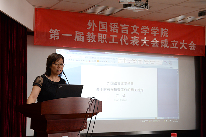 会议向全体教师播放了我国战略科学家黄大年同志的优秀事迹专题片,学院分党委书记刘娟老师传达了学校关于向黄大年同志学习的要求,要求全体教师学习黄大年同志心有大我、至诚报国的崇高精神,争做“四有好老师”;刘娟老师还向全体教师介绍了《外文学院关于财务报销等工作的相关规定汇编(2017年版)》的主要内容,强调要认真学习遵守;学院院长苗兴伟向与会人员强调了科研经费使用等财经纪律,介绍了《关于进一步落实中央财政科研项目信息内部公开制度的通知》内容,要求全体教师切实按照中央巡视组提出的整改要求,严格遵守学校的各项财经制度;学院副院长陈则航向全体教师介绍了学院制定的关于教师出访、公务接待、聘请外事人员开展讲座等规章制度;学院徐学峰老师向与会人员介绍了学院网站建设等信息化建设工作。