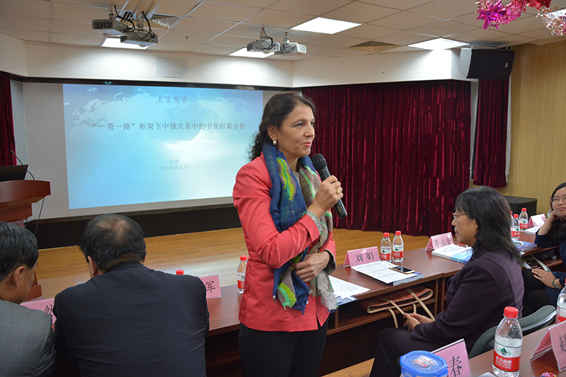 在主旨发言环节,恰尔巴耶娃研究员高度评价了中国和吉尔吉斯斯坦的友好关系。她指出,中吉外交历史悠久,是互相尊重的战略伙伴,丝绸之路经济带更是使两国关系趋于紧密。