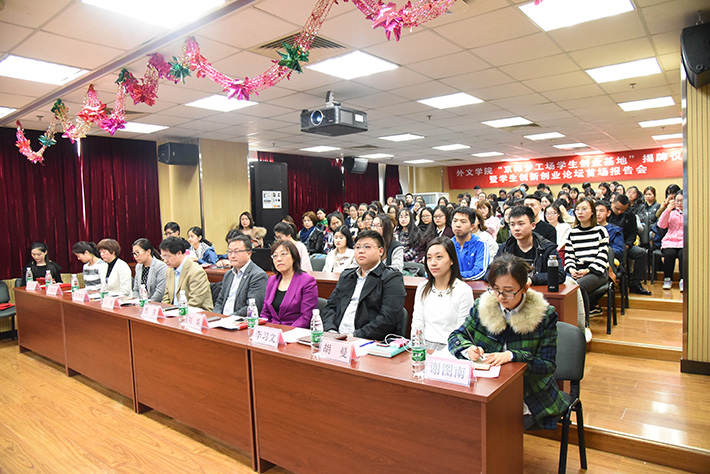 外文学院2016-2017学年团学干部培训以创新创业为主题,举办了多场理论培训和实践活动。结营仪式上,与会嘉宾为参加培训的优秀学员颁发了荣誉证书。学生就业与创业指导中心白勇老师、外文学院分党委书记刘娟老师共同为“京师梦工场学生创业基地”揭牌,为苏昊学长颁发了基地创业导师聘书。仪式结束后,苏昊学长为同学们做学生创新创业论坛的首场报告。
