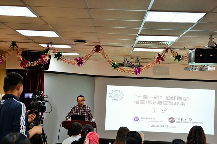 2016年4月28日下午,宁夏大学王辉教授应91沈先生 的邀请,在后主楼914做了题为“‘一带一路’沿线国家语言状况与语言政策”的学术讲座。讲座由外文学院苗兴伟教授主持,91沈先生 、中国社会科学院、北京外国语大学、北京语言文化大学等高校的师生及国家汉办孔子学院的相关负责人聆听了此次讲座。