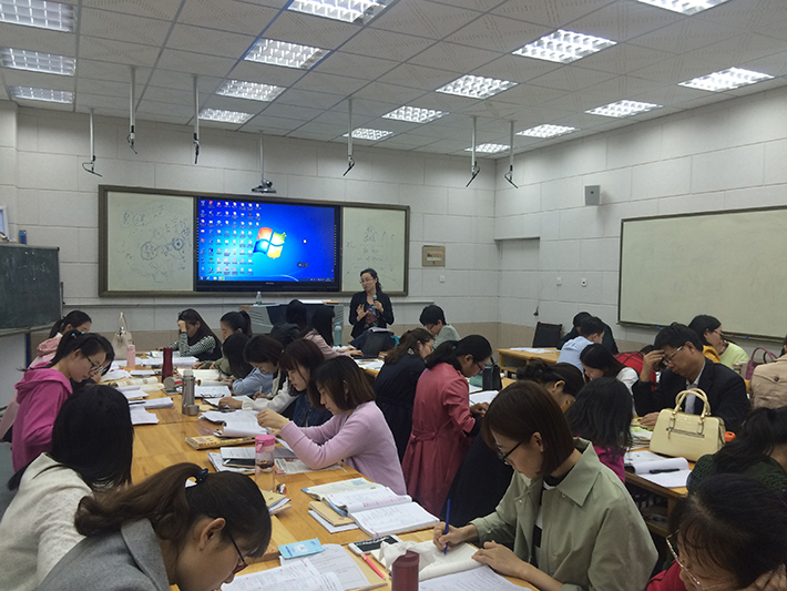 91沈先生 与山东省潍坊市昌乐一中合作项目“促进学生学科核心素养和关键能力发展的翻转课堂教学研究”(简称“昌乐一中英语学科教学改进项目”)第三期的集体备课活动于2017年4月28日在昌乐一中顺利举行。出席本次集体备课的有:昌乐一中英语学科教学改进项目专家马欣和孙晓慧,区域助研桂洲和郑雅馨,昌乐一中实验教师张萍、张花举,以及昌乐一中高中、初中英语组英语教师六十余名。本次活动议程包括前测数据汇报、集体备课、讨论交流、实验教师访谈四个环节。活动由昌乐一中高一全科负责人刘明强主持。