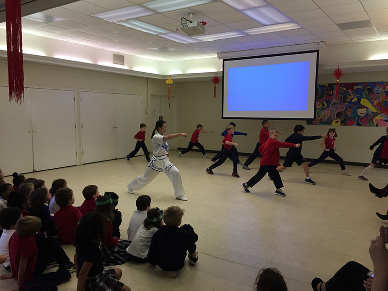 2月27日,威玛孔院再次受邀前往圣安德鲁小学与该校师生及家长们共同庆祝中国春节。志愿者教师刘梁好为孩子们带来葫芦丝独奏《月光下的凤尾竹》,梅婷婷老师为大家演奏了琵琶曲《送我一支玫瑰花》、《欢乐颂》,随后刘梁好老师又为大家表演了一套行云流水的长拳,现场的孩子们立马被这位英姿飒爽的老师迷住了,纷纷跑上台来要和老师学习酷炫的“抡臂”技巧。