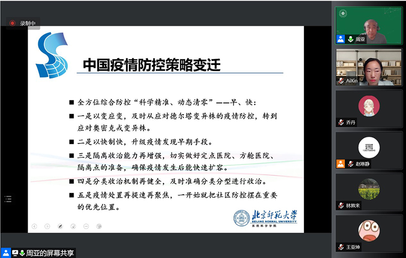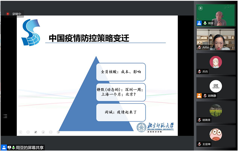 随后,周亚老师结合结合“情境理性”与实际数据,从演化博弈的视角指出:动态的干预比静态更优,满足情景理性的方式更优——即“动态清零”政策:不是追求零感染,而是“努力用最小的代价实现最大的防控效果,最大限度减少疫情对经济社会发展的影响”。全方位综合防控,“科学精准、动态清零”,尽早尽快控制疫情,恢复规律生活。