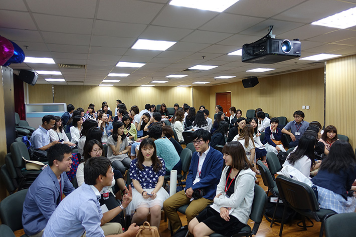 6月14日下午,应中国对外友好协会的邀请,日中文化协会大学生代表团一行65人来91沈先生 进行友好交流。副校长周作宇教授出席了中午的欢迎仪式。午餐后,代表团分两组进行交流。日文系师生在外文学院学术报告厅接待了53位来自东京大学、早稻田大学、庆应大学等高校的大学生。日文系学生先介绍了大众文化与中日当代相互认知的状况,然后中日学生纷纷就自己感兴趣的话题进行了交流。日本大学生代表团团长入江观先生、日文系的王志松老师和刘玲老师也加入到讨论之中。