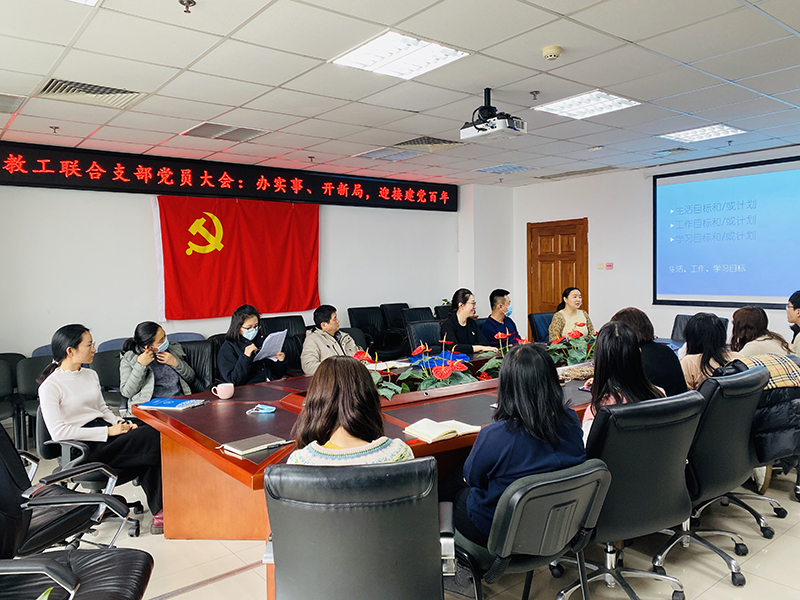 上午10:00教工联合支部党员大会在支部书记的主持下进行。此次会议的主题是“办实事开新局,迎接建党百年”。今年是建党百年,教工联合党支部通过新学期党员大会号召支部党员设定工作、生活和学习目标、树立“办实事”思想和工作作风,既为新学期开好局,又为迎接建党百年做好充分的准备。