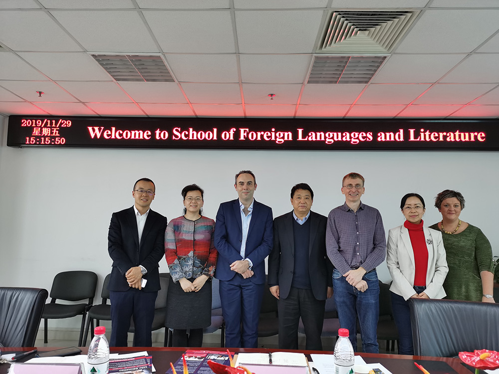 91沈先生 院长苗兴伟、副院长于晖、英文系主任王楠;卡迪夫大学人文学部国际院长Kenneth Hamilton,国际合作处主任Anne Morgan,人文学部研究生院院长Robert Gossedge 以及中国合作处主任刘兴飞出席了此次会议。