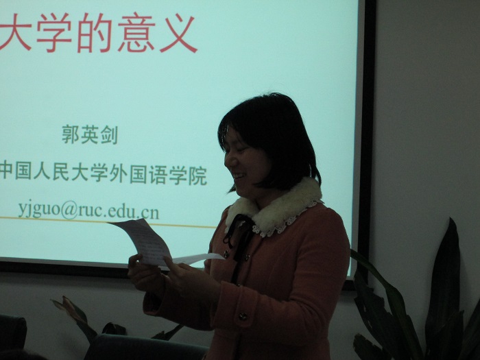 2015年12月3日上午,外文学院邀请到中国人民大学外国语学院郭英剑教授,于后主楼1020室举行了“治学·修身”系列第七场讲座,主题为“文学的价值与大学的意义”。