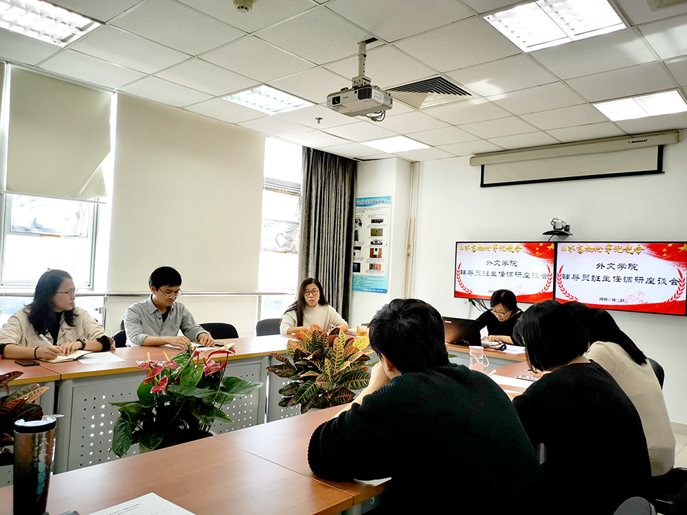 为进一步扎实推进“不忘初心,牢记使命”主题教育,将主题教育精神落到实处,外文学院党委于10月31日中午在后主楼1006会议室召开辅导员班主任专题调研会,调研会由学院党委书记刘娟主持,学院全体专职辅导员、本科生班主任代表张林,研究生班主任代表马宏伟参加了调研。
