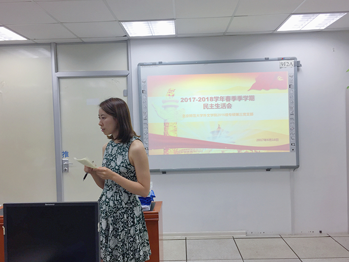 2017年6月16日晚,外文学院2016级专硕第三党支部在后主楼912教室召开了民主生活会。大会由支部书记姚秋昕主持,会议开展成功,对党员同志的政治思想学习和工作生活产生积极影响。