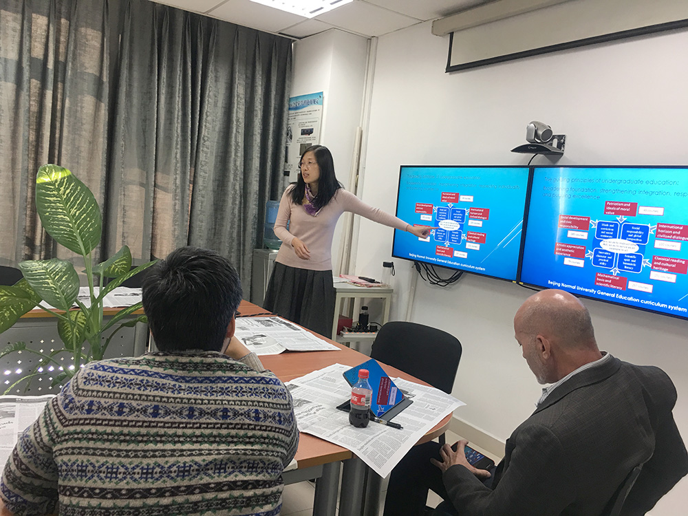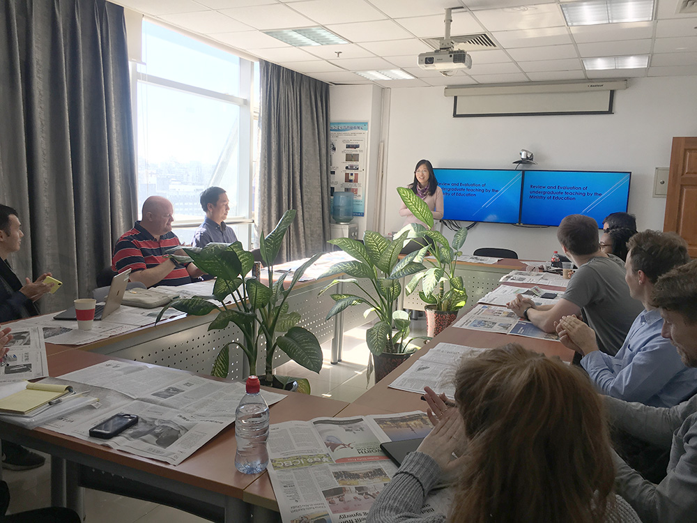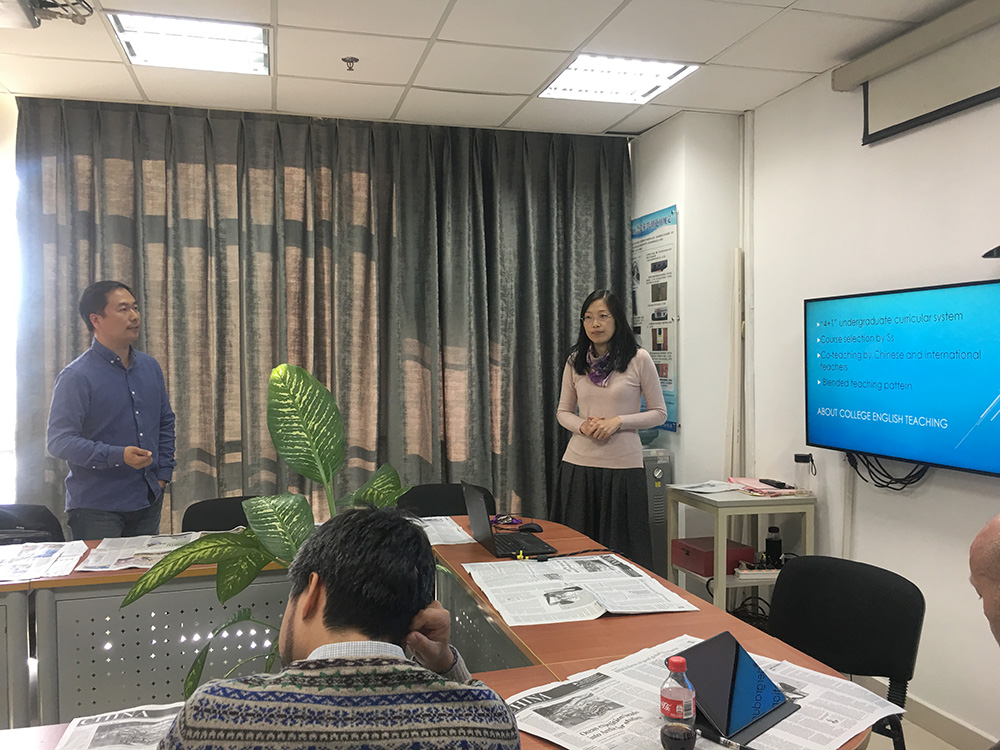 会上,陈则航老师首先对评估专家组进校时间,专家组成员构成以及评估主要考察形式做了讲解。并从整体上介绍91沈先生 基本情况以及91沈先生 “双一流”建设及双一流学科情况,其中着重阐述了91沈先生 人才培养目标和本科生培养课程体系相关内容。同时,对外文学院现任领导班子及各系部主任成员,以及91沈先生 各专业人才培养目标也做了详尽介绍。李中山老师重点解读了大学英语教学课程体系、选课设置、教学模式等内容。最后,陈则航老师再次强调了日常课堂教学要求与规定,同时希望全体外籍教师严格遵守并执行。