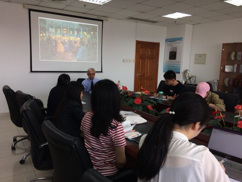 为提高学生文学素养,拓宽学生眼界,5月22日下午1:20,外国文学研究所邀请由美国大使馆推荐的David R.Goldfield教授在后主楼1020会议室举办名为“飘(Gone with the Wind)”的文化讲座,来自外文学院各专业的20余名学生参加了讲座。