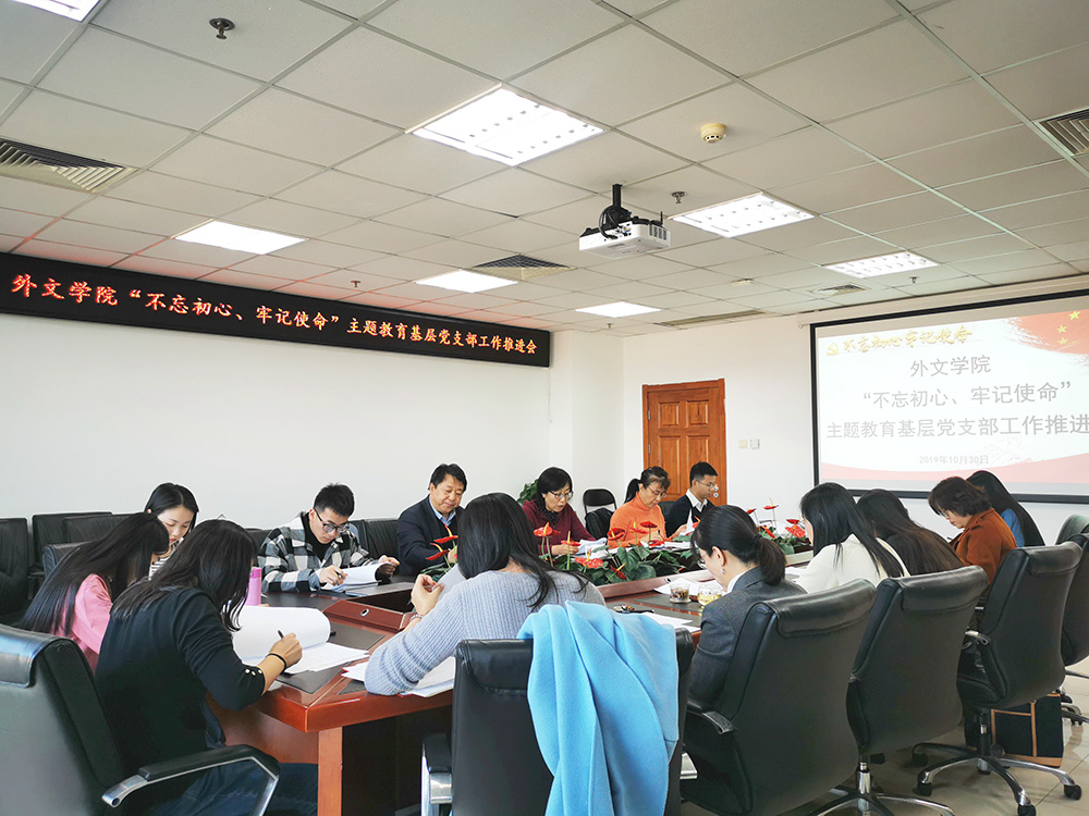 外文学院召开“不忘初心、牢记使命”主题教育基层党支部工作推进会暨2019—2020学年第一学期党委扩大会议