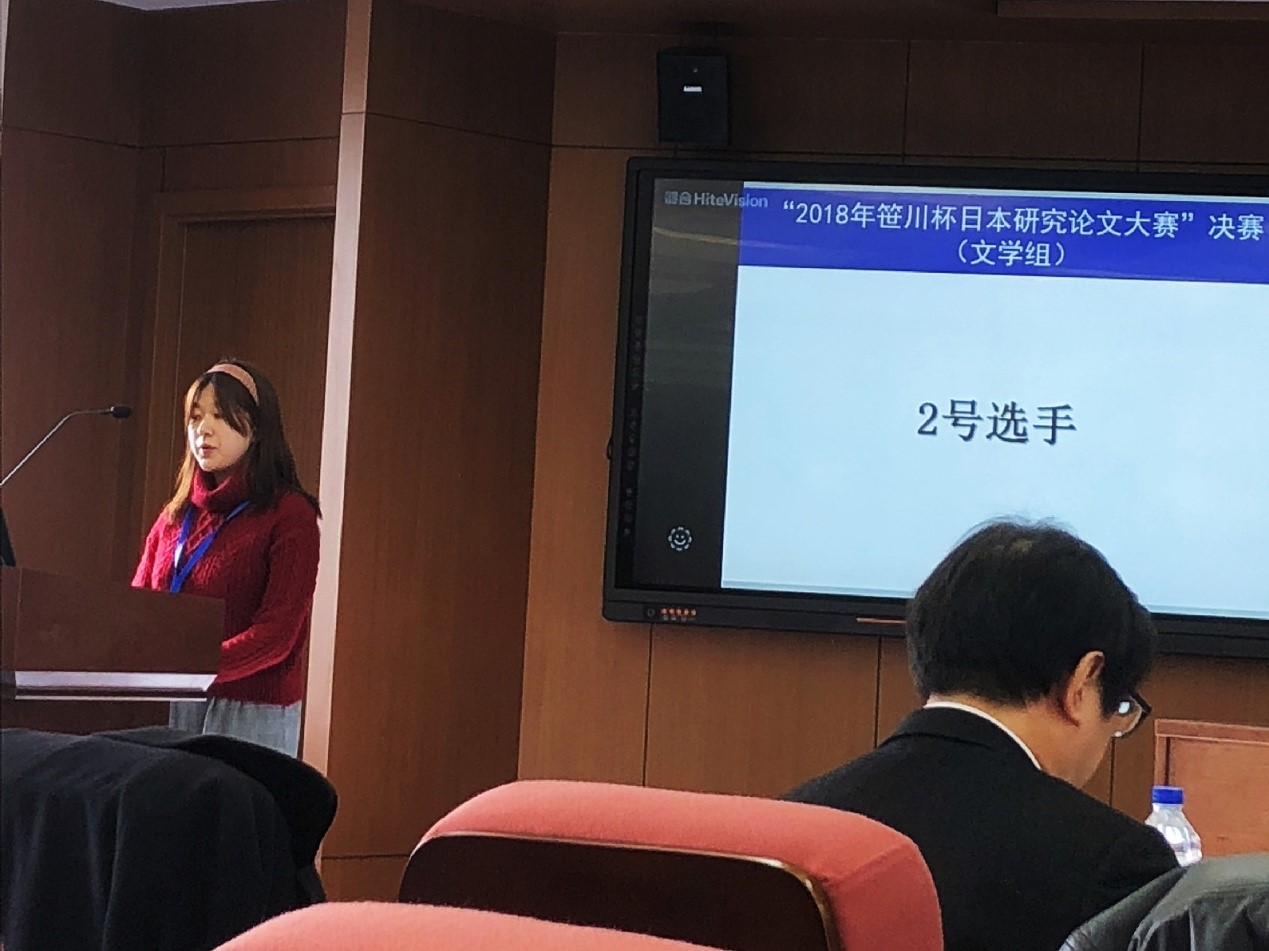 本次比赛共有来自全国两百多篇论文参赛,通过相关领域的专家对参赛论文的匿名评审,评选出45篇优秀论文,并邀请其中30篇论文作者参加决赛。应邀并参加决赛的论文作者对各自研究成果进行发表,并回答评审委员会的提问,最终确定论文名次(该环节使用日语)。左华艺同学的论文题为《『赤い鳥』における中国像についての研究--挿絵を視点として》,由日文系林涛老师指导,以日本《赤鸟》儿童文学杂志中的插图为研究对象,用图文并茂的PPT清晰地呈现了研究的过程和成果,角度新颖、方法严谨,得到了评委的肯定。