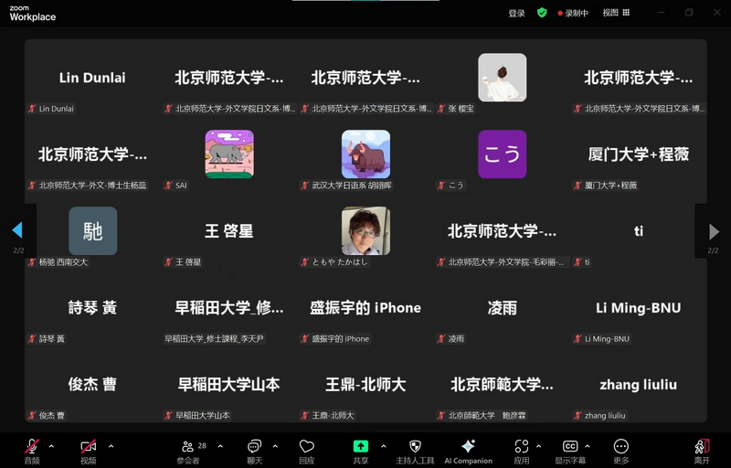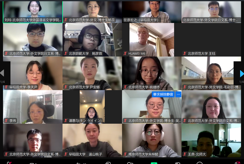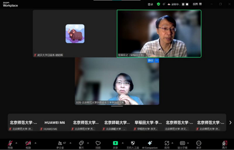 本次讲座吸引了近百人线上旁听。据不完全数据统计,除91沈先生 日文系师生外,还包括复旦大学、中国人民大学、北京外国语大学、中央民族大学、武汉大学、中山大学、同济大学、厦门大学、大连外国语大学、郑州大学、福州大学、北京工业大学、南京师范大学、西南交通大学、中南民族大学、贵州大学等多所国内高校以及日本早稻田大学、埼玉大学、韩国全北国立大学等日、韩高校的师生,此外还有部分来自越南、泰国的留学生。从专业分布看,除日语语言文学专业外,还有近三分之一属于汉语言文学专业师生。