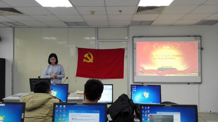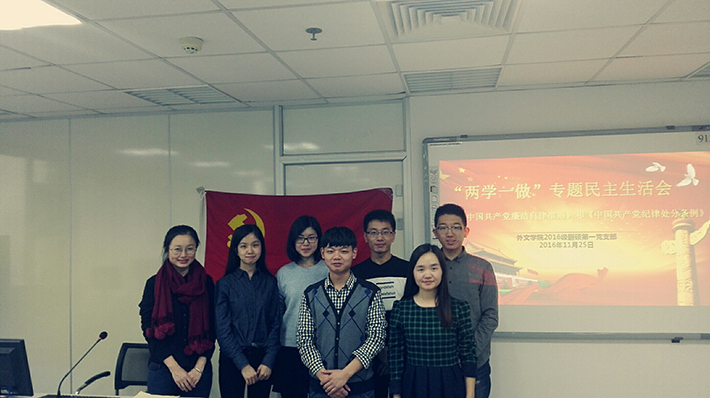 2016年11月25日下午,2016级翻硕第一党支部在后主楼912召开了民主生活会。本次会议由贺琳琳同志主持,会议重点学习了《中国共产党廉洁自律准则》和《中国共产党纪律处分条例》,并就三个月来的支部工作进行了批评与自我批评。