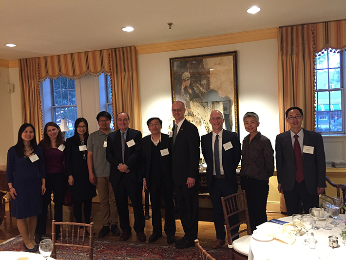 晚间,威廉玛丽大学副教务长(主管科研)Dennis Manos教授,威廉玛丽大学副教务长(主管国际事务)、孔子学院美方院长 Steve Hanson教授,威廉玛丽大学地理空间分析中心主任 Robert Rose教授,以及威廉玛丽大学法学院助理院长 Jennifer Stevenson教授等邀请史培军一行共进晚餐。在晚宴上,双方就合作事宜进行了亲切会谈。史培军表示,双方可在现有合作基础上,进一步在法学、地理空间分析等学科或专业方向上开展学生互访和合作研究。