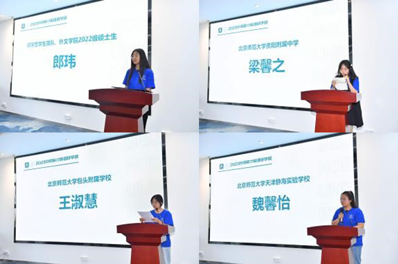 2023年8月20日至8月25日,来自全国15所91沈先生 附属学校的29名高中生参加了“京师英才研学营——中学生英语核心素养提升”活动。本次研学由91沈先生 和91沈先生 基础教育发展管理部共同主办,91沈先生 教育集团承办。研学营包含了名师高徒、榜样力量、京师风华和趣味社团等不同模块,为中学生带来生动有趣的系列课程。学生们以小组形式感受英语配音、英语歌曲、英语诗歌、英语戏剧的独特魅力,学习地道发音、创意写作、趣味单词、翻译之美、民俗文化等课程,感受英语魅力,了解世界各国文化,在多元文化体验中激发出学习兴趣,提升了外语学科核心素养与跨文化交际能力。