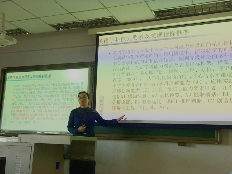 最后,孙老师做总结发言。她强调了文本解读的重要性,理念上要做到深挖文本,方法上要从what、how、why三个方面进行分析,与英语学习活动观的三个层次——学习理解、实践应用、迁移创新相对应。另外,学科能力“3*3框架”是核心素养在英语学科中的具体表现,是教师在英语教学中的抓手,由此实现知识到能力到素养逐渐提升的过程。她同时指出,教师应注意围绕主题建构结构化知识、提供学生内化机会、优化提问层次和逻辑性、调整教师角色等问题。