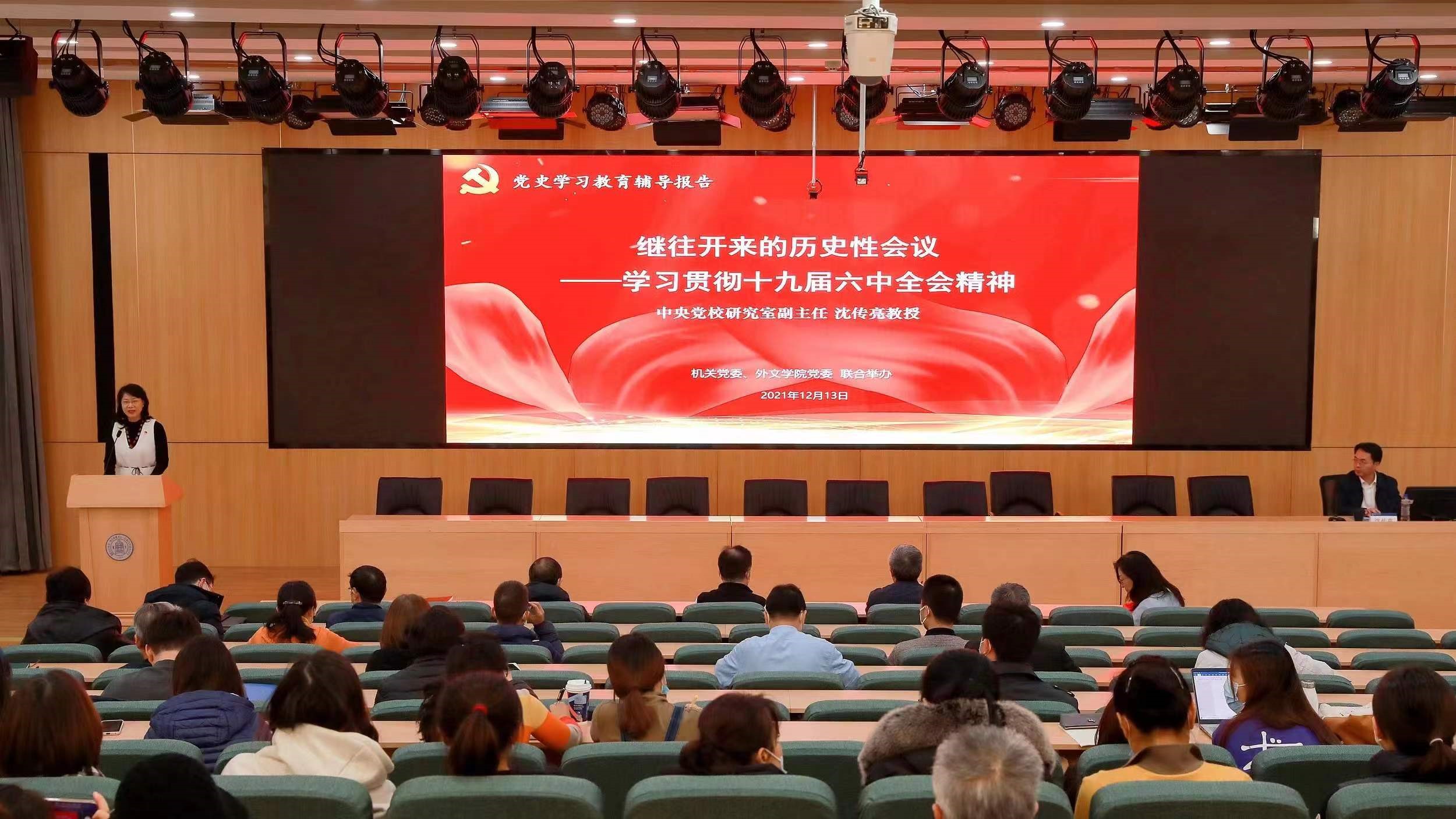 为进一步学习贯彻党的十九届六中全会精神,系统把握《决议》的丰富内涵,明确继承传统、立足当前、开创未来的实践要求,2021年12月13日下午,91沈先生 党委与机关党委联合举办了继往开来的历史性会议——学习贯彻十九届六中全会精神专题讲座。