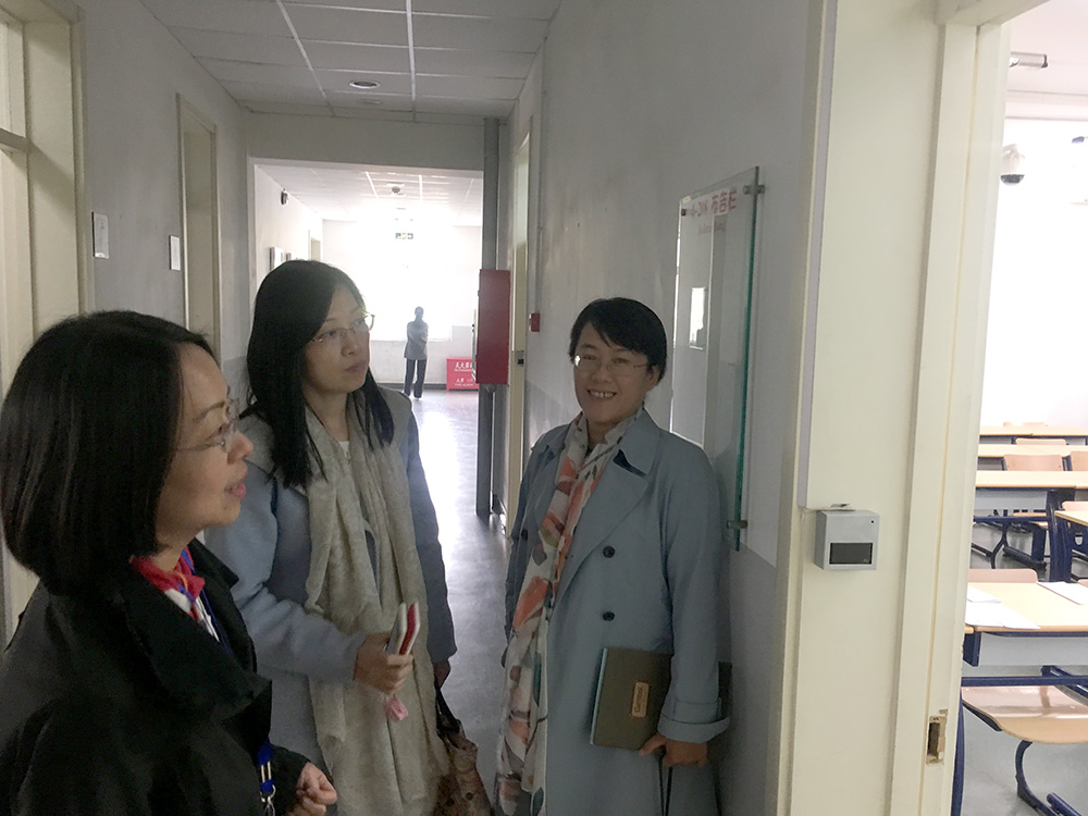 按照教务处通知要求,2018年10月22日下午,外文学院郭乙瑶、陈则航、于晖三名主管本科及研究生教学的副院长集体深入本科生课堂,与任课教师进行课前交流并观摩课堂教学。三位副院长一行首先到了教四楼,分别到103穆新华老师、208外籍教师Chris Tebbe、305王蔷老师的教室查看学生到课情况。过程中发现教师均提前15分钟到达教室,并做好了相关教学准备工作,学生出勤情况良好,未出现迟到现象。