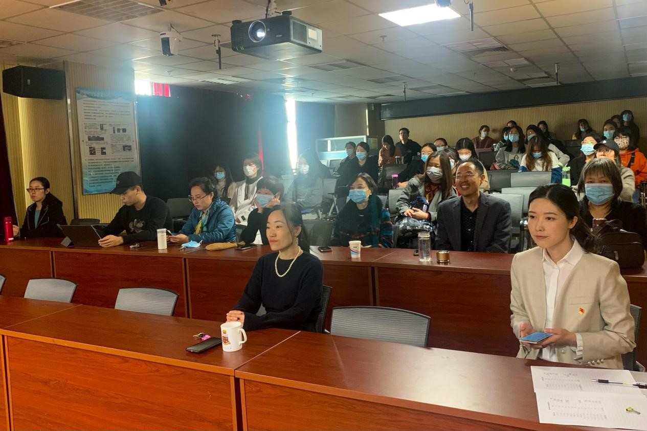 2021年10月29日下午,外文学院党委组织师德师风专题教育,学院党政联席会成员、党委理论学习中心组、师生党员代表及入党积极分子共同在后主楼914会议室观看影片《黄大年》。