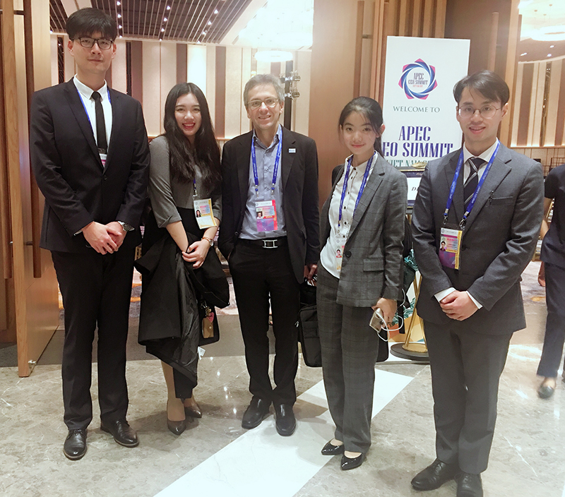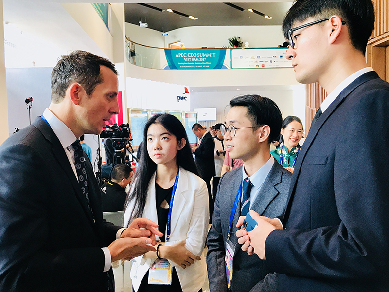 11月8至10日,亚太经合组织(APEC)工商领导人峰会在越南岘港举行,外文学院2014级本科生程康笛因获得2017模拟亚太经合组织大会冠军,作为中国四名青年代表之一,随国家领导人一同参加了会议。