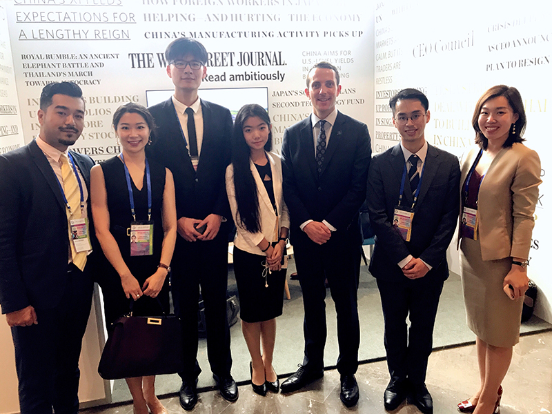 中国青年代表团与道琼斯亚太地区副总裁马克•罗杰斯(右三)、华尔街日报亚太地区副总裁(左一)合影