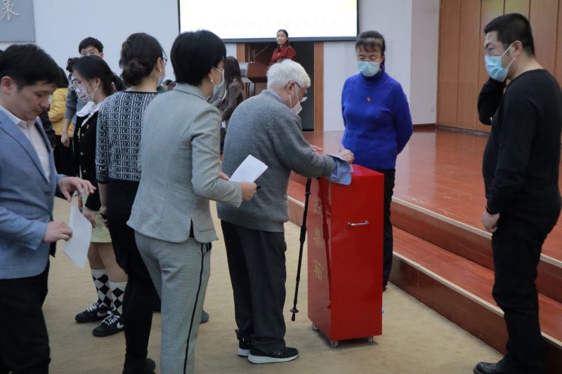 大会首选进行出席学校第十四次党员代表大会代表选举。到会党员听取并通过党代选举办法、监票人和计票人名单,艾忻向大会说明代表候选人预备人选酝酿、提名经过,组织委员林敦来向大会介绍党代表候选人基本情况。随后,大会以无记名投票的方式和差额选举的办法,选举产生了91沈先生 出席中共91沈先生 第十四次党员代表大会代表7名,当选代表名单为(按姓氏笔划排序):艾忻、孙引、张新颖、苗兴伟、林洪、徐畅、穆新华。