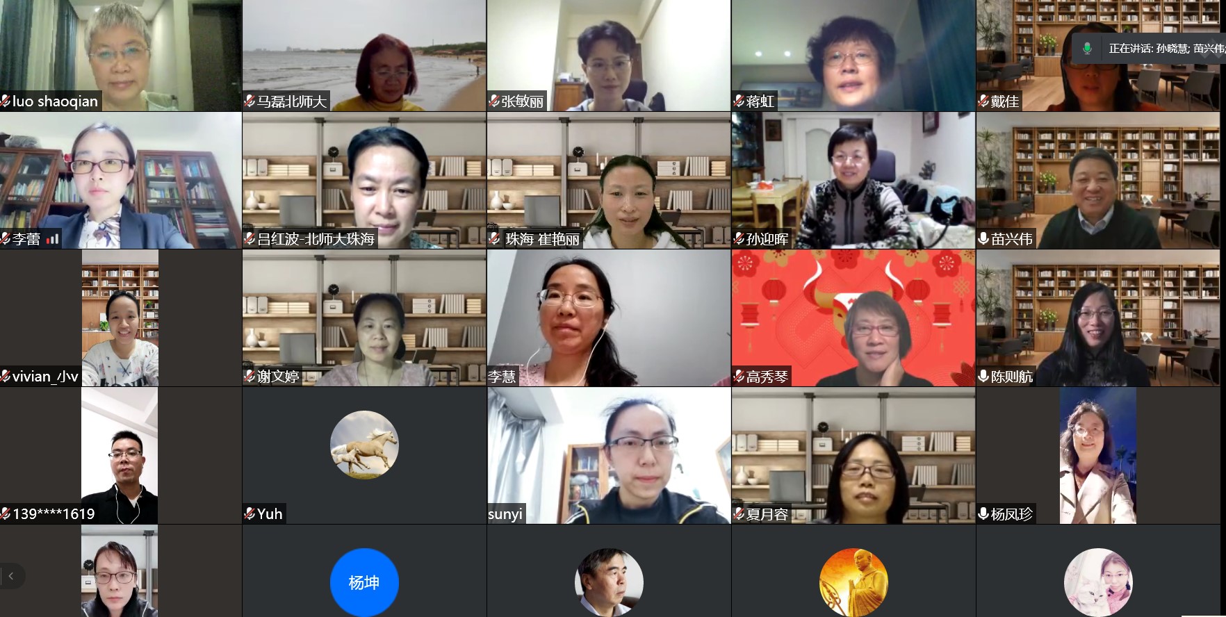2021年2月25日,91沈先生 珠海校区文理学院外语系召开新学期开学例会。会议由91沈先生 珠海校区文理学院外语系主任孙晓慧老师主持,本学期担任珠海校区本科和研究生教学工作的30名中国籍教师参加了此次例会。会议首先由苗兴伟院长致辞,苗院长强调了学校成立珠海校区文理学院的重要性,并对本学期在珠海校区任课的各位老师表示了感谢同时提出了殷切的期望。接下来各位老师在网上进行了自我介绍,加深了对彼此的相互了解,随后孙晓慧老师就本学期珠海校区的教学和科研等工作进行了安排,最后本学期在珠海校区授课的陈则航副院长和于晖副院长对本次会议进行了总结。此次会议是91沈先生 珠海校区文理学院外语系成立以来的第一次会议,对推动91沈先生 加快学校“一体两翼”建设步伐具有重要意义。