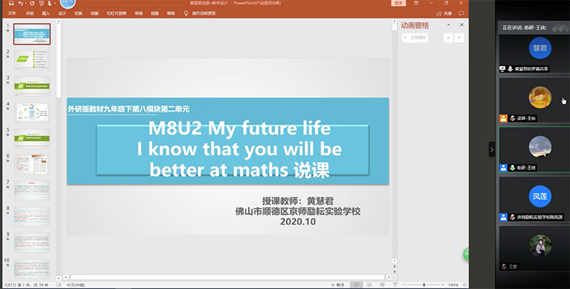由于未能及时参加91沈先生 外语教育与教师教育研究所秋季学期 “学科能力教学改进项目”专家指导教师集体说课活动,负责指导广东佛山京师励耘实验学校的我所王蔷教授和钱小芳副教授,于百忙之中抽出时间,在2020年10月31日14:00对该校黄慧君老师和陈凤莲老师单独开展“腾讯会议”线上说课指导活动。