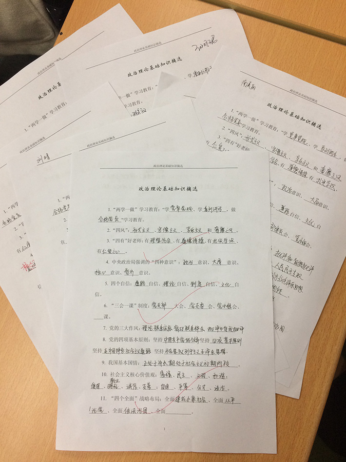 工作部署完成后,每位同学进行了政治理论知识自测,并互评成绩。测试成绩反映出大家对党的有关知识做到了理解和掌握,学习情况良好。