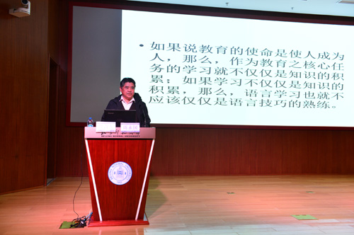 11月2日上午8:30大会顺利开幕,开幕式由院长苗兴伟教授致辞。本次大会邀请到南京大学王守仁教授、广东外语外贸大学王初明教授、91沈先生 程晓堂教授、清华大学外文系陈永国教授、黑龙江大学东语学院副院长兼《外语学刊》执行副主编孙颖教授,以及91沈先生 院长苗兴伟教授。围绕“高效课堂”的主题,专家们进行了前瞻性的发言,就“金课”、“续论指导下的英语教学”、“教师公开课”、“通识教育”、“教学科研新走向”、“基于语篇分析的批判性阅读”等话题展开精彩而务实的演讲。现场参会人员紧紧抓住此次学习机会,认真聆听来自各高校优秀教授的精彩发言,收获颇丰。