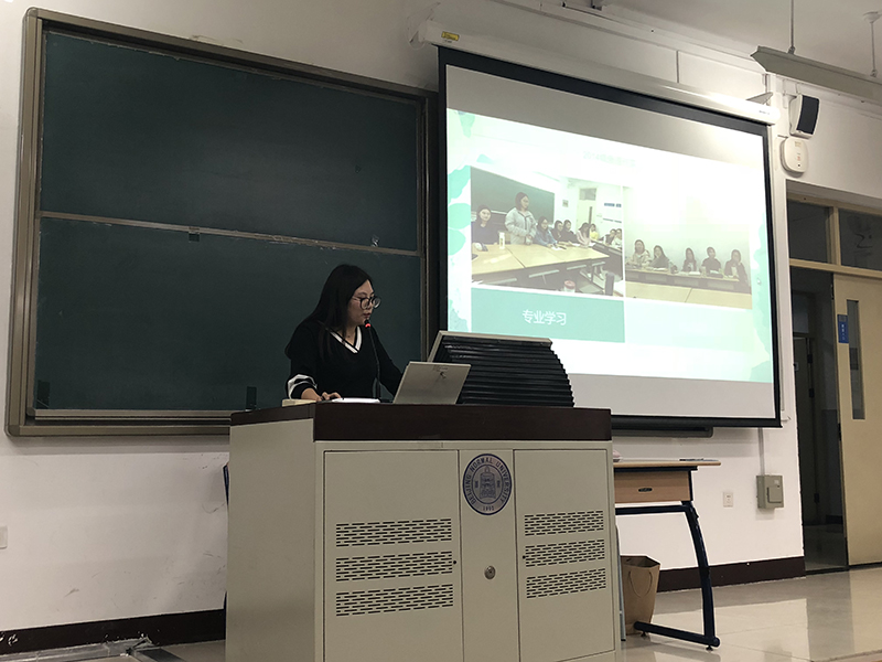 日文系的发言代表王蓉同学分享了她在月坛中学实习的感慨。她表示,教育实习是第一次从学生向老师转变,从言行、着装等细节方面都在积累经验的同时,也建立了与实习单位、实习学校学生的一种联系,这种联系不仅让我们学会怎样进行教学工作,同时也教会我们如何与不同性格的学生打交道,这也是一种能力的提升。