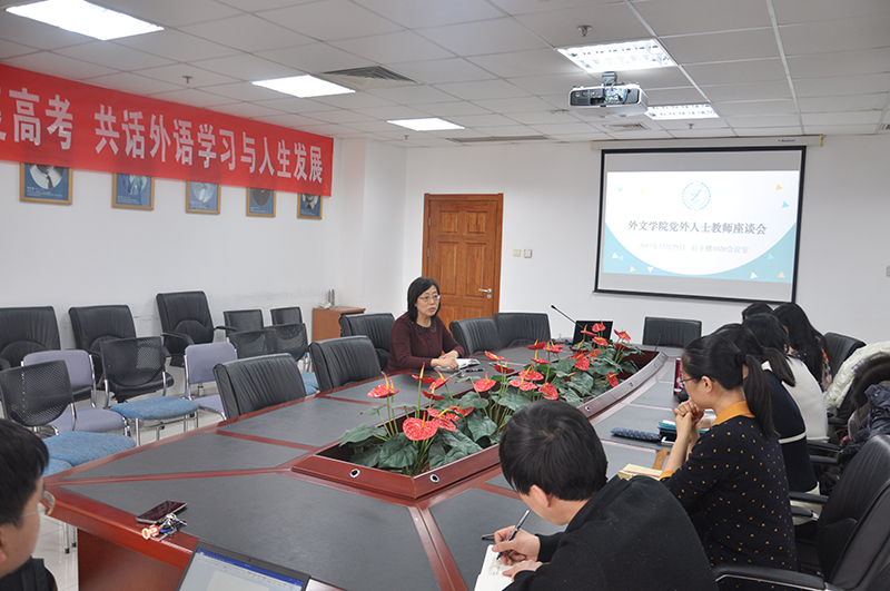 2017年12月29日,外文学院在后主楼1020会议室召开党外人士教师座谈会,向与会教师征求对学院工作的建议。会议由学院分党委书记刘娟主持,分党委统战委员冷丽敏、组织委员张新颖,以及学院党外人士教师代表出席会议。