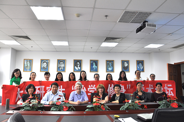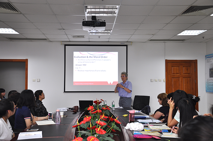 5月22日下午,外文学院研究生会于后主楼1020室成功举办“治学·修身”系列讲座第三场之Language, Culture and Politeness Theory: Conceptual Developments and Implications forTeaching。本次讲座有幸邀请到了Helen Spencer-Oatey作为主讲人。Helen Spencer-Oatey是应用语言学方面专家,也是英国华威大学应用语言学研究中心主任,常年致力于对文化和礼貌系统的研究。91沈先生 苗兴伟、于晖、罗少茜等老师出席了本场讲座。