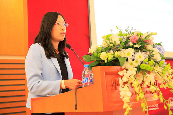 随后,“中国英语阅读教育研究院”院长、91沈先生 王蔷教授代表研究院向与会人员介绍了研究院成立的背景、宗旨和任务。王蔷教授在发言中介绍了前期在制定英语阅读标准、支持英语阅读教学、指导英语阅读研究、培养英语阅读师资方面的工作成果,表示研究院不仅将继续研究和推广英语阅读教育,在理论层面完善中国中小学生阅读素养框架及其他外语阅读理论研究,也将设立多个方向的研究课题,在国内和国际高端学术研讨上发出中国的声音。在实践上,研究院希望将理论真正落地,深入课堂。只有教师与学生真正转变与提升,才是研究院成立的价值所在。她希望在顾问委员会的指导下,研究院的理论研究能够取得更突破性的成果,同时也希望学术委员会、教研委员会和专聘研究员能够在各个层面推动阅读教学研究和实践活动。