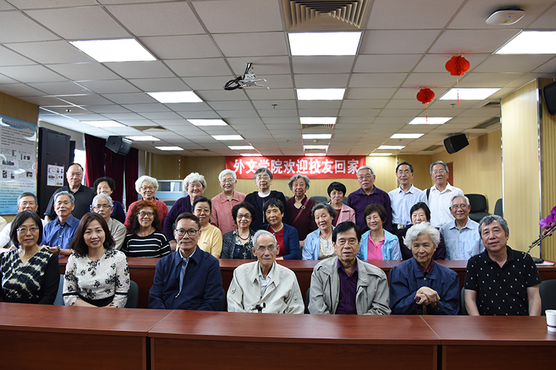 2018年5月8日上午9:30,91沈先生 外文学院英文系1968届校友怀着对母校、对学院、对各位老师无比感恩之情,从祖国四面八方汇集到后主楼914会议室,20多位校友欢聚一堂共同庆贺大学毕业五十周年,一同追忆同窗旧事,畅谈人生感悟,展望美好未来。