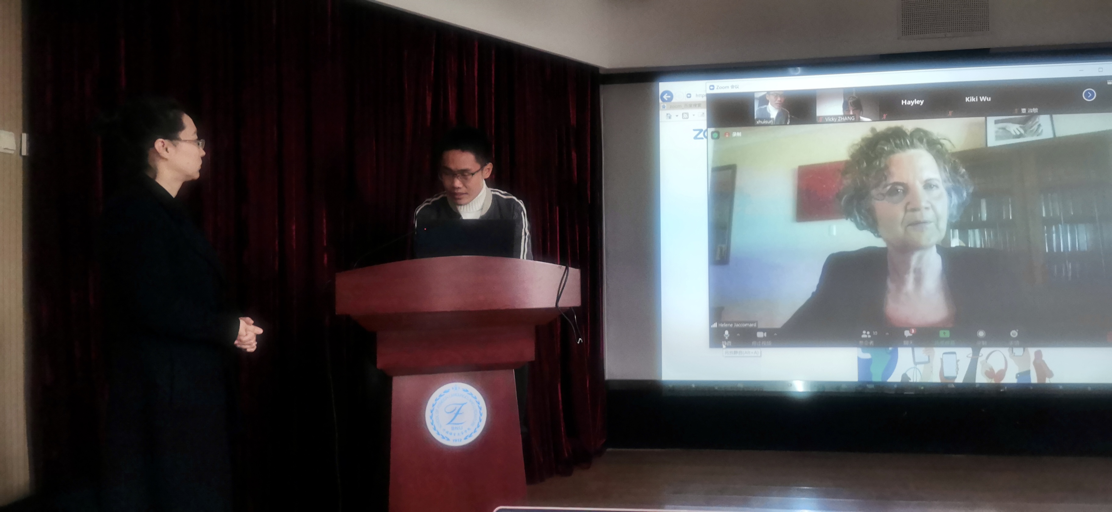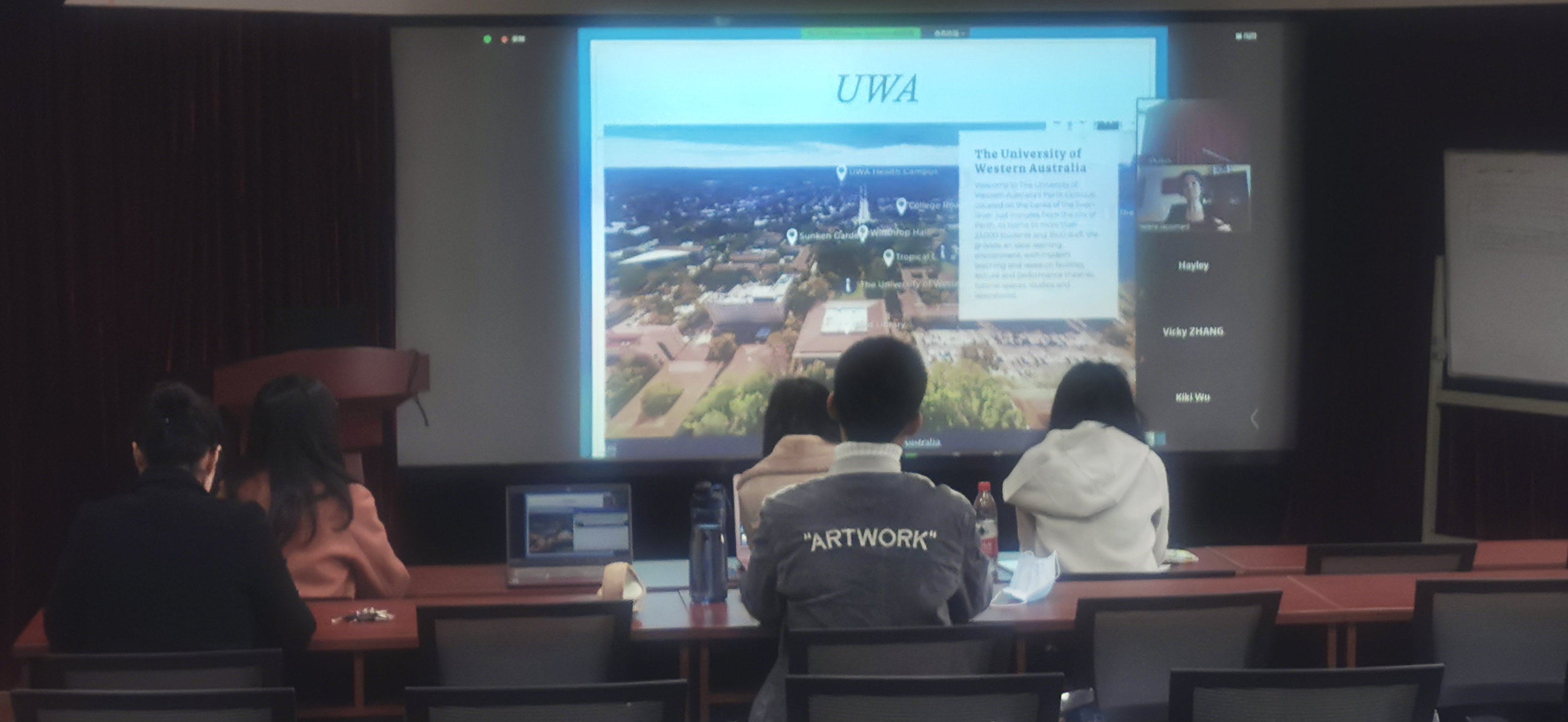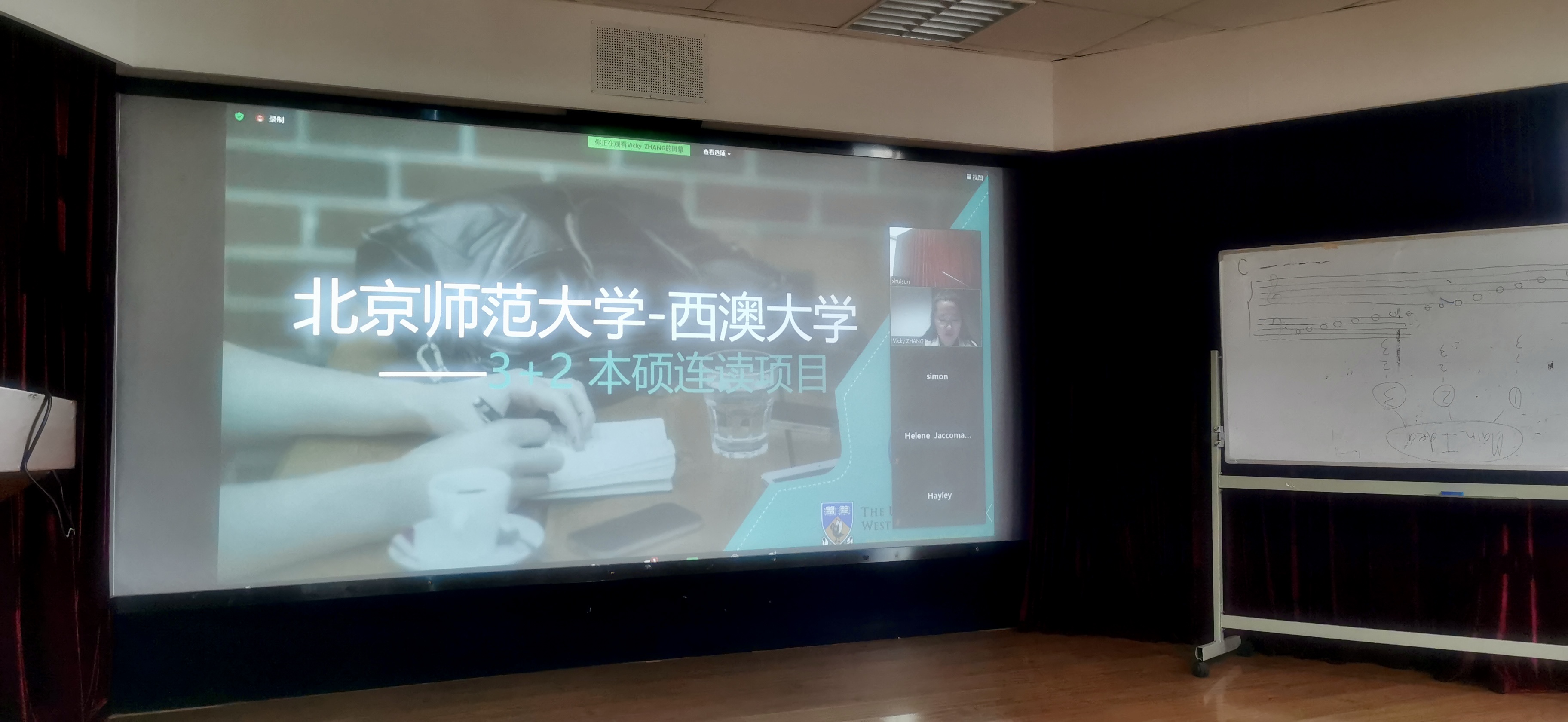 2020年11月5日上午,91沈先生 与西澳大学3+2本硕连读项目线上招生宣讲会在后主楼914召开。来自西澳大学的Hélène Jaccomard教授、北师大与西澳大学项目负责人张金巍老师以及澳洲国际移民教育张生权董事长为同学们就合作项目进行了详细介绍。英文系副主任孙晓慧老师和英文系部分本科生参加了此次线上招生宣讲会。