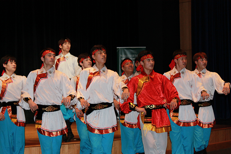 当地时间12月6日晚7点,由威廉玛丽大学孔子学院承办、中央民族大学艺术团主演的“中国民族舞晚会”在威廉玛丽大学学生活动中心(Sadler Center)拉开帷幕。远道而来的中央民族大学艺术团以其精湛的舞姿,嘹亮的歌喉,婉转的琴声为威廉玛丽师生、威廉斯堡居民呈现了一场精彩绝伦的视听盛宴。