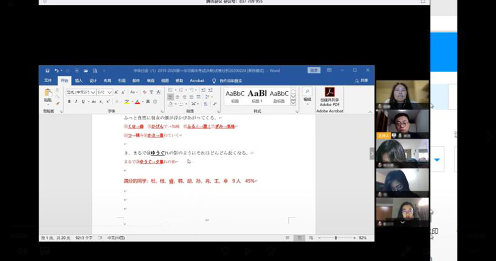 2月24日一早,伴随着8点的钟声,疫情期间的外文学院远程教学在“云端”开课了,10门次课程在“云端”同期开启,三百多名师生在全国乃至世界各地同步上课。面对疫情,为了让学生在家安心学习,学有所得,学有所获,外文学院严格执行学校“停课不停教,停课不停学,停课不停研”的重要决定。2020年春季学期,共开设有476门次课程,涉及任课教师100人,选课学生12783人次。其中464门次课程进行在线教学。