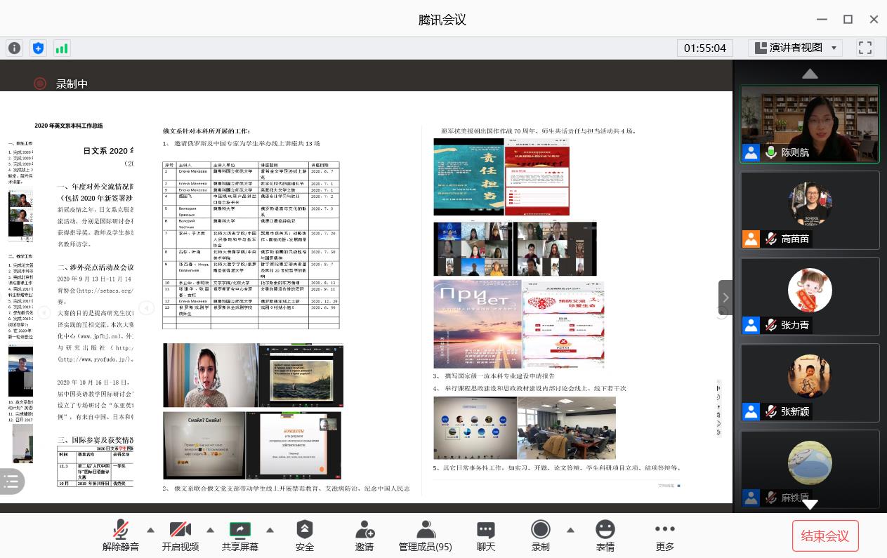公共外语教学主管副院长郭乙瑶做了题为“‘疫/艺’乎寻常”的工作总结,重点汇报了公共外语教学部在2020年疫情期间对全校各类公共英语课程教学、考试等活动进行的创新改革举措。