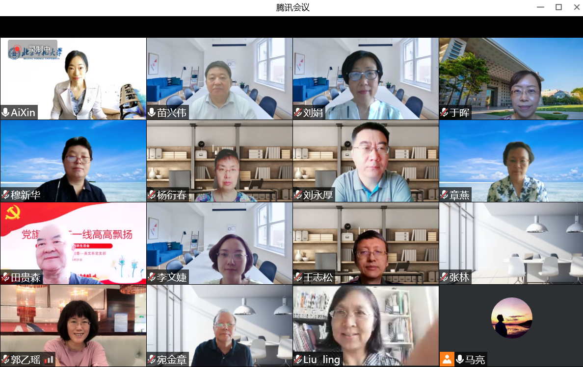 2022年7月15日上午,外文学院于线上顺利举办2022年度教师座谈会。会议由外文学院党委书记艾忻主持,院长苗兴伟、学院退休教师田贵森老师、宛金章老师、各教工党支部书记、系主任、教师代表参加本次会议。