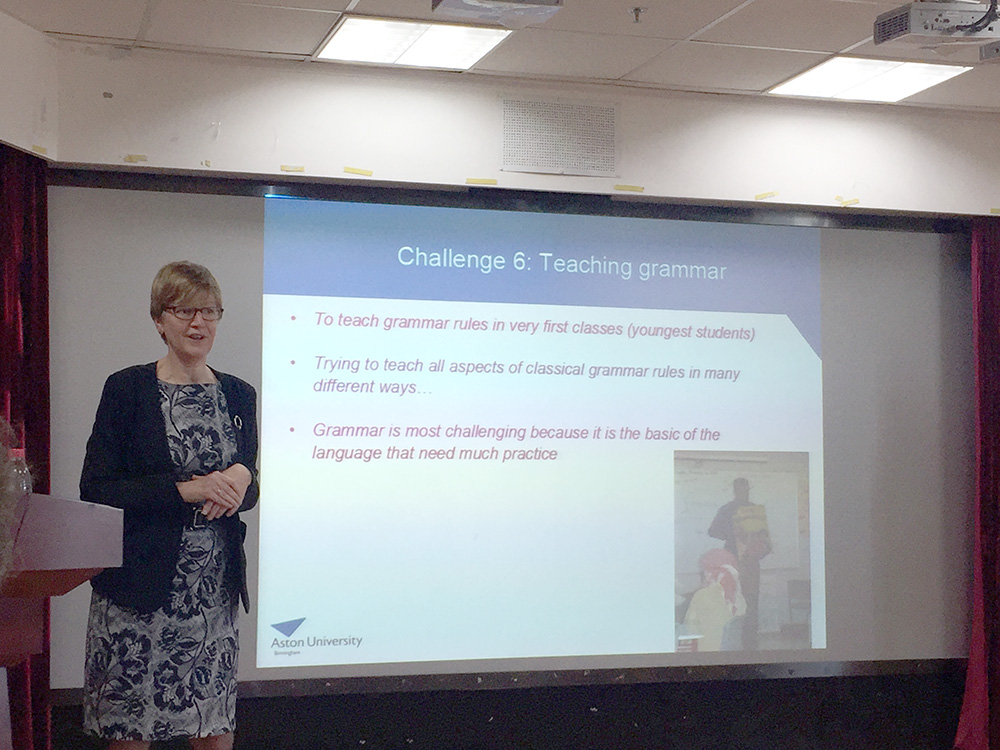 基于研究结果,Sue博士探讨了少儿英语教学的挑战及其反思。她指出当前TEYL的挑战主要包括口语表达、课堂纪律、个体差异、学习动机、班级规模、语法教学等六个方面,并对一些热点问题进行了反思,如“二语教学中能否使用母语”、“少儿英语语法教学是否必要”等。随后,Sue博士与现场听众讨论了中国教学背景下面临的一些问题,以及可能的应对途径。