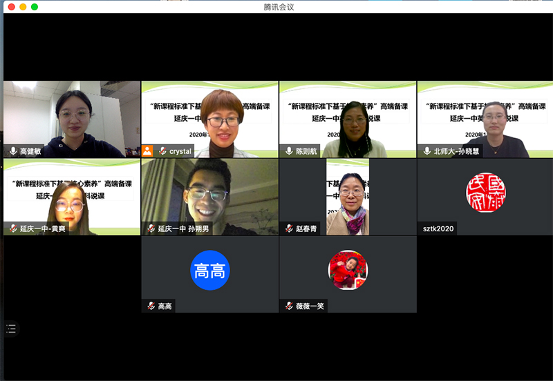 2020年11月6日16点,91沈先生 与延庆一中合作的“新课程标准下基于核心素养的高端备课”项目开展本学期第一次专家指导说课活动。本次活动于“腾讯会议”线上举行。延庆一中的王岚老师和黄爽老师在本次活动中进行说课展示,来自91沈先生 的陈则航教授和孙晓慧副教授也出席了本次活动,并对两位老师的说课进行指导和点评。此外,延庆一中英语组的各位老师于线上一同旁听了本次说课活动。