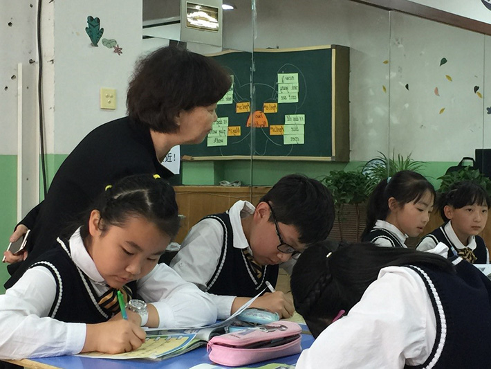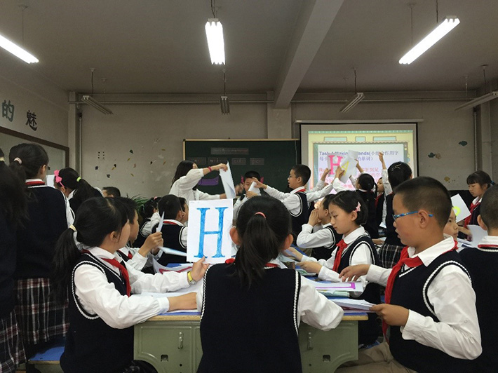在两天的英语课堂教研活动中,王蔷教授和孙晓慧博士共听了七节英语课,其中包括五节小学英语课和两节初中英语课。小学英语课的课型包括阅读教学、语音教学、单词对话教学和复习课;初中英语课的课型包括综合任务活动课和阅读教学。这七节英语课从课堂教学模式、教学活动设计、师生互动等多个方面反映了该校英语教学的整体理念和实践水平。授课结束后,王蔷教授和孙晓慧博士对每一节课都进行了深入而细致的点评。评课涉及教师的教学目标、教材分析、学情分析和教学重难、点等的撰写方式、教师问候语的表述方式,教学活动的设计、教师指示语的使用、教师的教学理念更新等多个方面。在评课中,王蔷教授和孙晓慧博士特别强调教师应在英语课堂中注重深挖文本,关注课堂主题和主线、注重情境的创设、关注学生的思维、注重将碎片化知识结构化、充分相信学生并放手给予学生足够的时间和机会,注重“无痕”教学、使英语课堂真正变成走心的课堂,在英语课堂点滴间实现育人的价值。评课环节在参会教师之间引起了强烈反响,老师们认为这样的评课既有理论又有实践,非常“接地气”,感到受益匪浅。