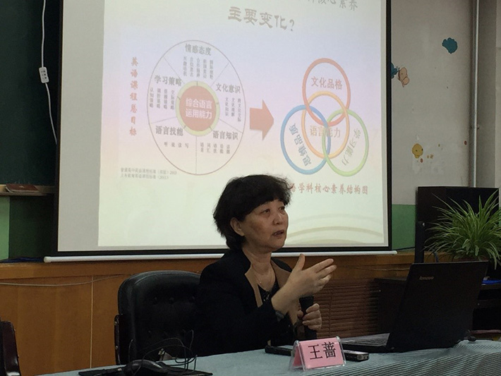 王蔷教授在做题为“英语学科核心素养培养背景下的课堂教学改革”的讲座