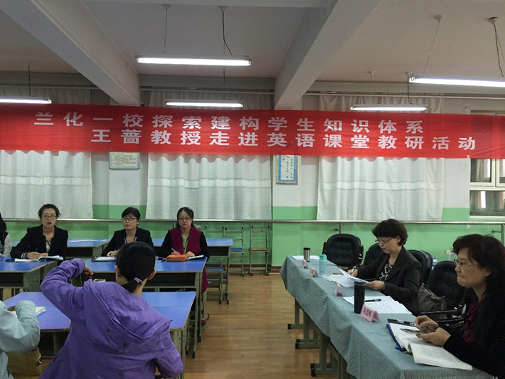 兰化一校是一所九年一贯制学校,是兰州市标准化学校。学校分为小学部和初中部。其中小学部现有学生1337人,教师73人,教学班25人;初中部现在学生607人,教师51人,教学班12个。兰化一校朱校长一直秉承以“博·约”为文化核心,坚持引领师生博学于文,约之以礼的办学理念,采取“走出去、请进来”的方式,努力提高该校教师队伍的整体教学素质。该校英语组现有专职英语教师16名。该英语教师团队具有强烈的专业追求,希望以课改为契机,努力建设具有特色的英语课程体系,提高自身及整个团队的教学能力,为学生的终身英语学习奠定坚实的基础。此次教研活动吸引了来自该校及该校所在片区的兄弟学校教师、甘肃省教育科学研究所的英语教研员等共计30余人。